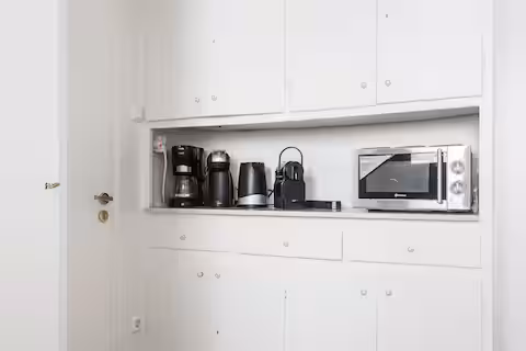 For your entertainment, there’s a 30” flat-screen Smart LED TV with internet access and free Netflix. The fully equipped kitchen includes a fridge-refrigerator, kettle, microwave, filter coffee maker, Nespresso machine, oven, stovetop, toaster, and all necessary utensils, dishes, and glasses. The apartment also offers two full bathrooms—one with a bathtub and one with a shower. Additional amenities include a washing machine, iron and ironing board, and a body weight scale.