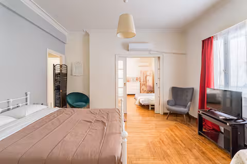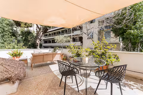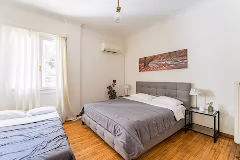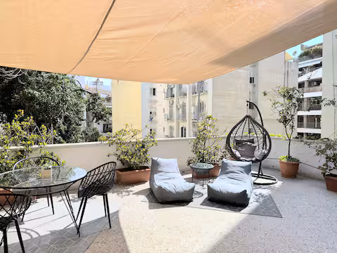 The apartment seamlessly blends vintage charm with modern comforts, offering a bright and sophisticated design within a renovated traditional Athenian building. The interior includes a living room, three bedrooms, a fully equipped kitchen, and two full bathrooms. The expansive private terrace is perfect for dining, enjoying a drink, or simply relaxing. Children will especially appreciate the spacious outdoor area. The heated Jacuzzi is brand new and provides an ideal spot to relax under the trees, all while being in the city’s heart. Please note, the hot tub is not preheated or powered on prior to arrival; it takes about 3-4 hours to heat the water during colder months. It will be sparkling clean, prefilled with water, and covered upon your arrival.